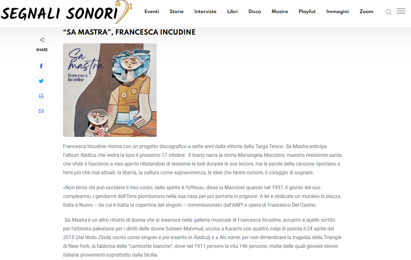 il singolo di Francesca Incudine "Sa mastra".