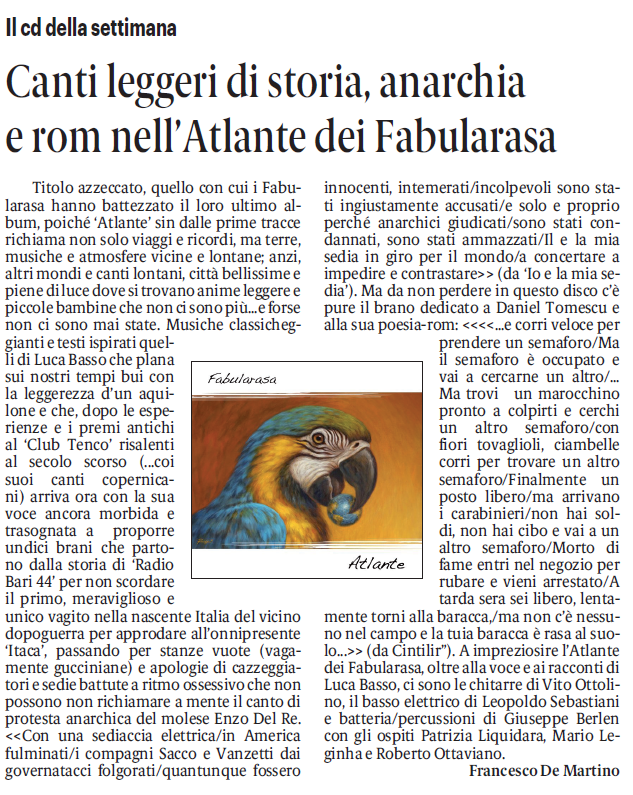sul Quotidiano di Bari "Atlante" dei Fabularasa