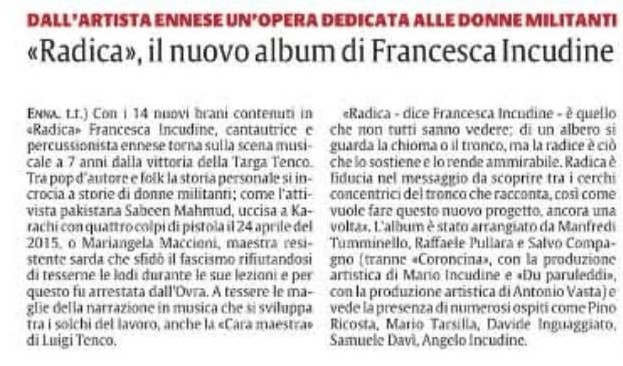 La Sicilia dedica un trafiletto all'uscita di "Radica",