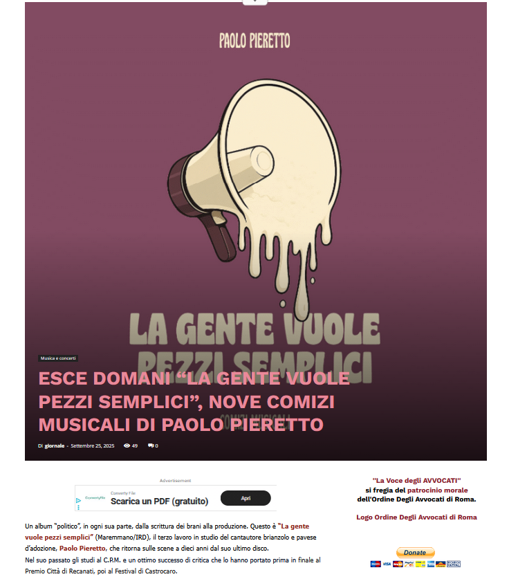È online sul sito di Radio usom il podcast dell'intervista di Fel (EMOTIONinMOTION) a Paolo Pieretto per l'uscita di "La gente vuole pezzi semplici". Clicca sul link o sull'immagine sotto per aprire la pagina del podcast: https://cast3.server89.com/public/25/podcast/1f094b01-88b3-648c-b539-e197da643a40/episode/1f0a0667-908e-6414-afc7-3d225339f964